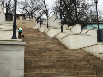 В Керчи на малой Митридатской лестнице с утра идут работы: женщина моет саму лестницу, - передает Керчь.ФМ.