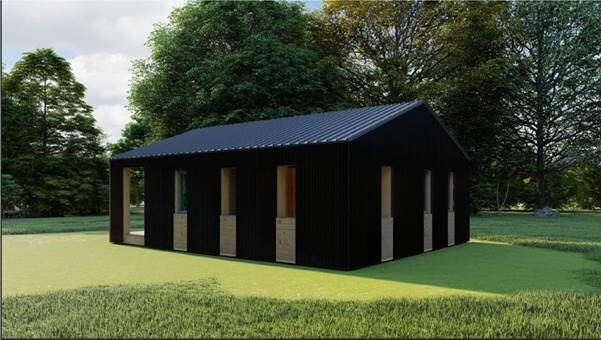 - внешняя отделка: профилированный лист крыша и боковой фасад, цвет RAL 9005; торцевые стены - дерево, цвет серый; стена с боковым остеклением - дерево, цвет серый