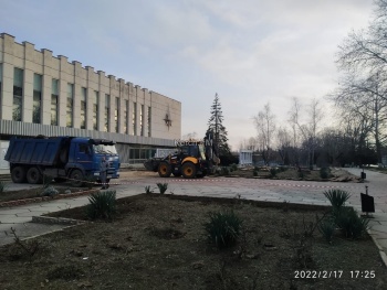 В Керчи у Дворца Спорта появилась техника и рабочие - подрядчик приступил к работам по благоустройству, - передает Керчь.ФМ.