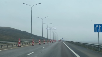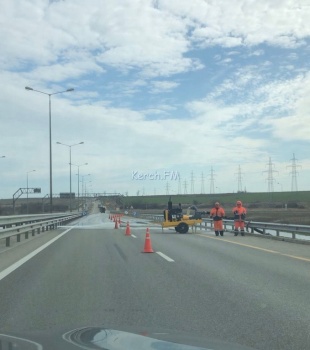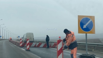 На автоподходах к Крымскому мосту со стороны Керчи идут укрепительные работы. По полосе движения от моста в Керчь перекрыта одна полоса дороги конусами и бетонными блоками. Это связано с работами по укреплению обочин, - передает Керчь.ФМ.