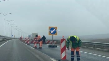 После сильных осадков обочины со стороны Крыма и со стороны Тамани начали «ползти». Отметим, еще хуже ситуация произошла в начале автоподходов на Кубани, там одна полоса местами затоплена водой. Воду оттуда откачивают с помощью техники.
