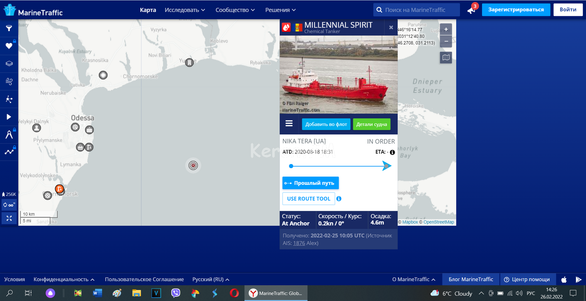 В то же время согласно данным слежения навигации последние данные расположения танкера MILLENNIAL SPIRIT были получены вчера, 25 февраля, в 10:05.