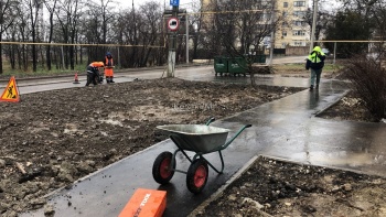 В Керчи продолжается ремонт дороги по ул. Рыбаков. Пешеходные дорожки, которые начали вымащивать еще месяц назад, уже заасфальтировали, - передает Керчь.ФМ.