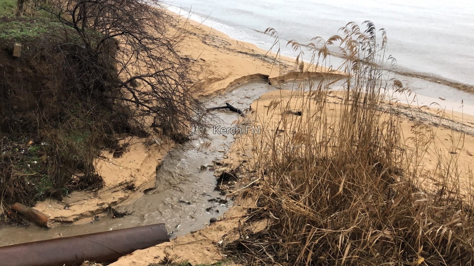Так, на ул. Курортной есть ливневки, об очистке которых недавно отчитались власти. Есть и большие трубы, которые потом выводят эту воду к морю, но так ли это? Спускаемся вниз.