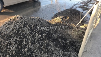В Керчи рано утром 4 марта произошла авария в районе АТП - водитель не справился с управлением, и машина перевернулась. Спустя буквально несколько часов здесь на дороге появились рабочие - они засыпали провал на обочине дороги, недалеко от места аварии, а точнее напротив, асфальтовой крошкой, - передает Керчь.ФМ.