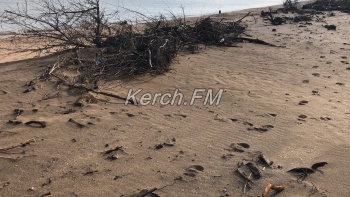 В Керчи на городском пляже шторм сначала забрал песок, а потом вернул, но не только его. Вместе с песком на берег вымыло мусор и деревья, - передает Керчь.ФМ.