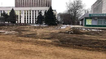 Еще в начале марта здесь были рабочие, которые продолжали снимать плитку с участка и вывозить ее. Появился и паспорт объекта, спустя почти полмесяца после начала работ. Но вот рабочие пропали.