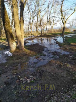В Молодежном парке произошел прорыв водовода. Вода с не совсем приятным запахом залила пешеходные дорожки и стекает с обрыва, - передает Керчь.ФМ.