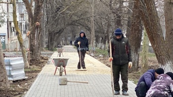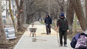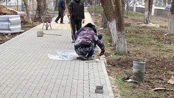 В Керчи продолжается благоустройство территории на 1-ой Пятилетки. Так, 25 февраля, в сквере рабочие проводят работы. Рабочие демонтировали старую плитку, засыпали щебнем тропинки и начали укладывать новую. Ранее мы писали, работы проводит ООО «Стройгарант»., - передает Керчь.ФМ.