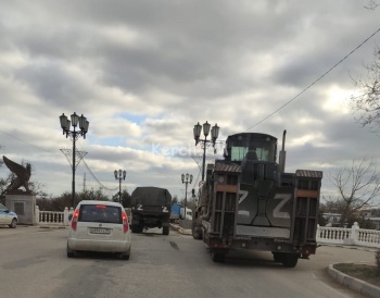 Въезд в Керчь встал в километровой пробке. Проблемы с пересечением моста с грифонами по Чкалова. На месте видно много военной техники с соответствующими знаками, - передает Керчь.ФМ.