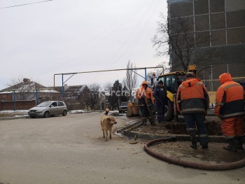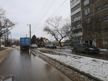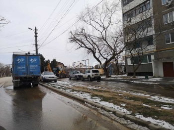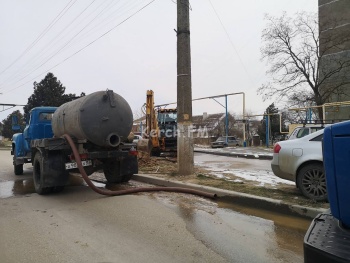 На Ульяновых в Керчи водоканал устраняет аварию. Воду сливает на проезжую часть. Потоки воды стекают в переулок Майский, который и так покрыт льдом, - передает Керчь.ФМ.