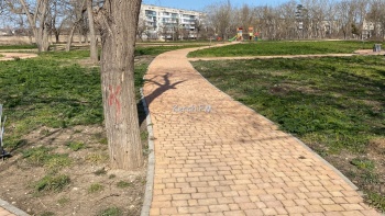 Стоит отметить, что на детской площадке под игровыми элементами потрескался цемент.