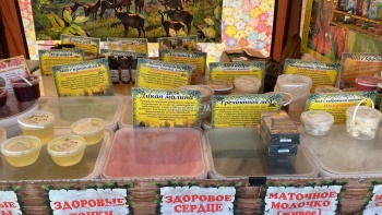 В Керчи 24 марта, около автовокзала, проходит ярмарка. Свою продукцию привезли предприниматели из разных регионов. Они представили колбасы, мёд, сыр, различные виды чая, грибы сушенные и маринованные, а также вещи, постельное белье и сувениры, - передает Керчь.ФМ.