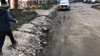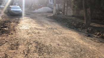 В выходные дни рабочие активно снимали здесь асфальт и бордюры, разбирали и вывозили плитку с пешеходных дорожек. К началу рабочей недели активные работы остановились. На объекте нет ни техники, ни рабочих, ни паспорта.