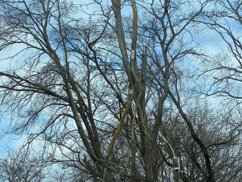 В Керчи 25 марта над дорогой на улице Славы свисает сломанная ветка. Она в любой момент может упасть на проезжающие машины или идущих людей, - передает Керчь.ФМ.