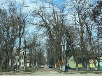 Над дорогой на ул.Славы в Керчи свисает сломанная ветка