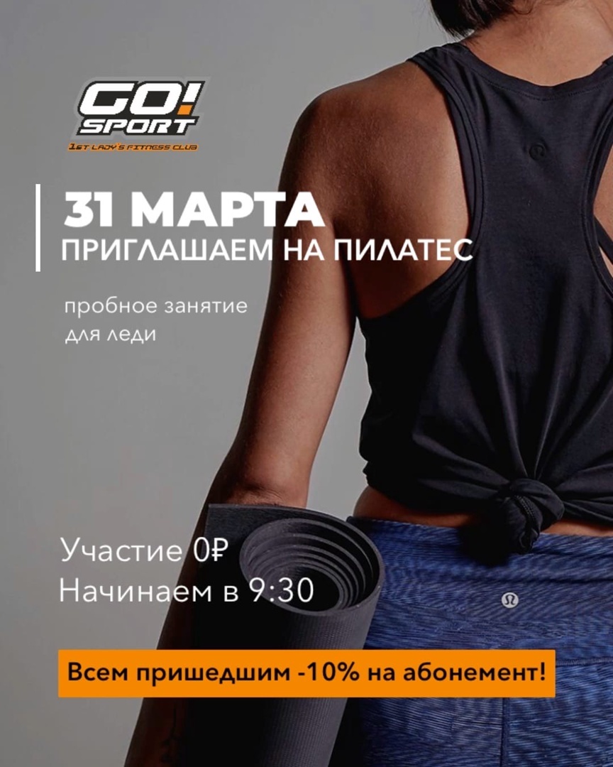 По случаю запуска нового направления 31 марта, в четверг, фитнес-клуб GO!Sport приглашает всех желающих леди на бесплатное занятие по пилатесу попробовать направление.