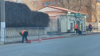 В Керчи 5 апреля на улице Свердлова вышел трудовой десант. Коммунальщики красят бордюры в красный, а ограждения в черный. Стоит отметить, что все рабочие в жилетах, - передает Керчь.ФМ.
