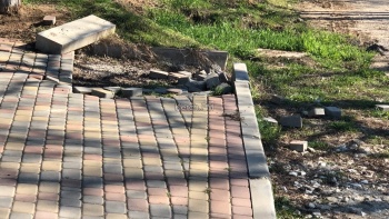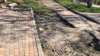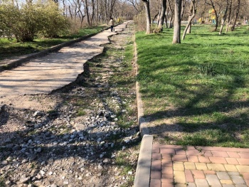 «Посмотрите какой парк. В этом году он такой ухоженный даже весной: дворники как пчёлки здесь по утрам работают, клумбы в порядке. Все более-менее хорошо. Но вот этот противотанковый ров посреди парка. А рушащаяся плитка, которую тоже ни один месяц не могут восстановить. Ах да, нужен тендер, отмыв… иначе никак», - пишут читатели.