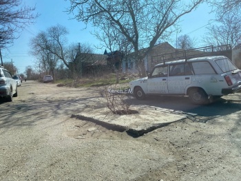 В Керчи на улице 23 Мая появилась очередная ловушка на дороге. Водителям стоит быть аккуратнее, чтобы не въехать в открытый люк. Керчане в него вставили ветки, - передает Керчь.ФМ.