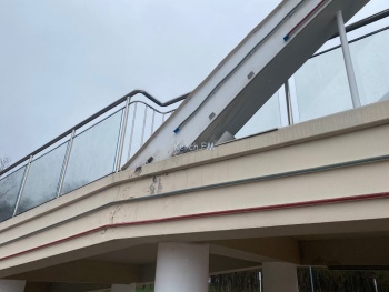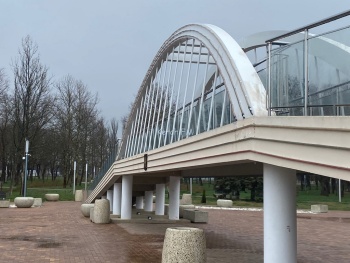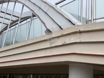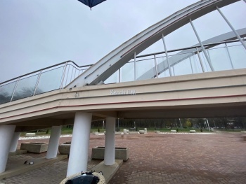 В Керчи в Комсомольском парке трескается и осыпается штукатурка на уменьшенной копии Крымского моста. Кроме этого, в вечернее время не работает частично освещение арок.