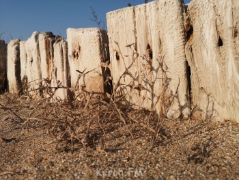 Дальше мы поехали на Арабатскую стрелку. По новому асфальту можно проехать только километров 5, до Солепрома. Дальше пограничники, и вход посторонним запрещен. Запрещен вход и к крепости Арабат. Кстати, крепость тоже была построена из камня Ак-Моная. Крепость хорошо видна с проезжей части.