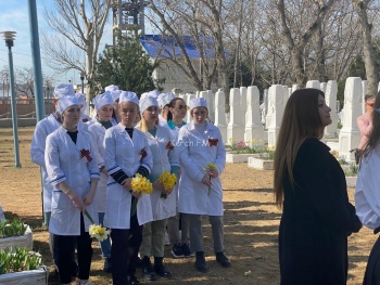 В Керчи 11 апреля в День освобождения Керчи проходят возложения цветов к местам боевой Славы и братским могилам. В возложении на воинском кладбище приняла участие администрация, совет ветеранов, студенты медицинского колледжа и керчане.