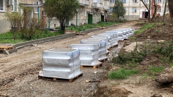 Рабочие уже частично установили новые бордюры, расчистили место под бельевую площадку. Кроме этого, проводится вырубка аварийных деревьев. Согласно паспорту объекта, работы должны завершить до 30 июня 2022 года.
