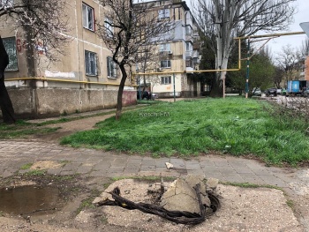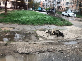 Ветками и бетонной плитой закрыт люк на пешеходной дорожке в Керчи