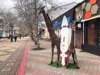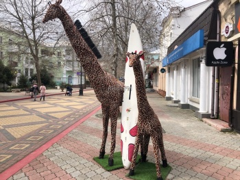 Предприниматели уже не знают, что придумать еще, чтобы привлечь покупателя. Так, один из магазинов, расположенный на центральной улице Керчи, перед входом в магазин поставил двух жирафов с серфом, - передает Керчь.ФМ.