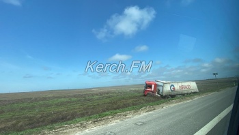 В Керчи на обочину у трассы «Таврида» лежит фура, - передает  Керчь.ФМ. Она находится в районе Батального, если ехать из Керчи в Феодосию.