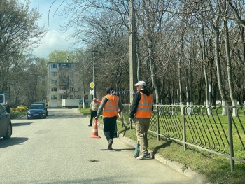 В Керчи 22 апреля на улице Кирова, около зоны отдыха «Черепашка», убирают дорогу. Осужденные наводят порядок на проезжей части с помощью лопат и мётел, - передает Керчь.ФМ.