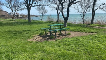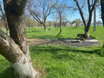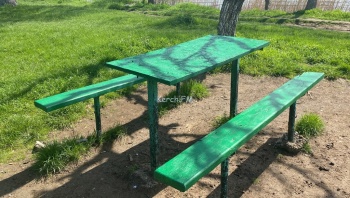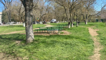 В Керчи 22 апреля в зоне отдыха «Черепашка» окрашивают столы и лавки в зеленый цвет. Вот только данным облагораживанием занимаются не коммунальные службы города, а предприниматель.