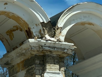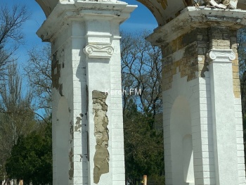 В Керчи арка в Приморском парке становится хуже с каждым днем. Она требует ремонта, ведь, штукатурка осыпается на приходящих в парк людей.
