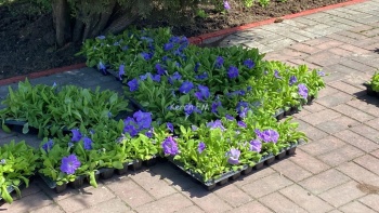 В Керчи 26 апреля в сквере Славы на клумбах высаживают петуньи. Все цветы одного цвета. Работы проводят сотрудники зеленхоза, - передает Керчь.ФМ.