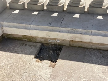 В Керчи на Митридатской лестнице пропали несколько кусков ступеней. Об этом Керчь.ФМ сообщили постоянные читатели. Всего керчанин насчитал три таких дыры в новой лестнице.