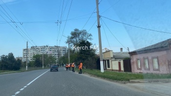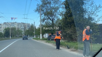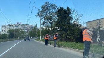 В Керчи 5 мая с утра осужденные чистили обочины дороги на Вокзальном шоссе. Работы проводили в районе остановки "Больница", - передает Керчь.ФМ.