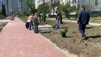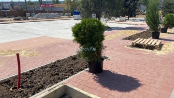 В Керчи 16 мая сквере на Таврической площади продолжается благоустройство. Рабочие практически завершили укладку плитки на пешеходных дорожках и приступили к озеленению территории. Высаживают кипарисы, ели и другие растения, - передает Керчь.ФМ.