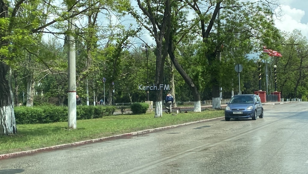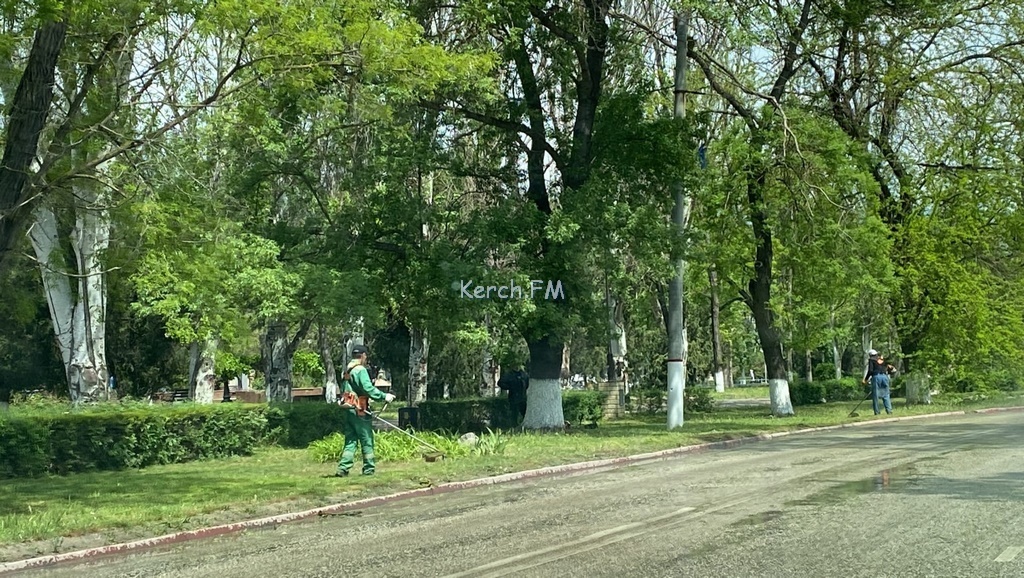 В Керчи 19 мая на улице Кирова косили траву. Работы проводили вдоль дороги, от здания администрации и в сторону сквера «Лётчиков».