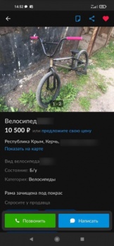 «В дежурную часть УМВД России по г. Керчи поступило заявление о пропаже велосипеда. Потерпевшая рассказала, что оставила велосипед на лестничной клетке, а на утро обнаружила, что двухколесный транспорт отсутствует. Участковые уполномоченные полиции совместно с потерпевшей, просматривая объявления в интернете, увидели выставленный на продажу похожий велосипед. Несмотря на то, что велосипед был видоизменен, владелица опознала свое имущество», - говорится в сообщении.