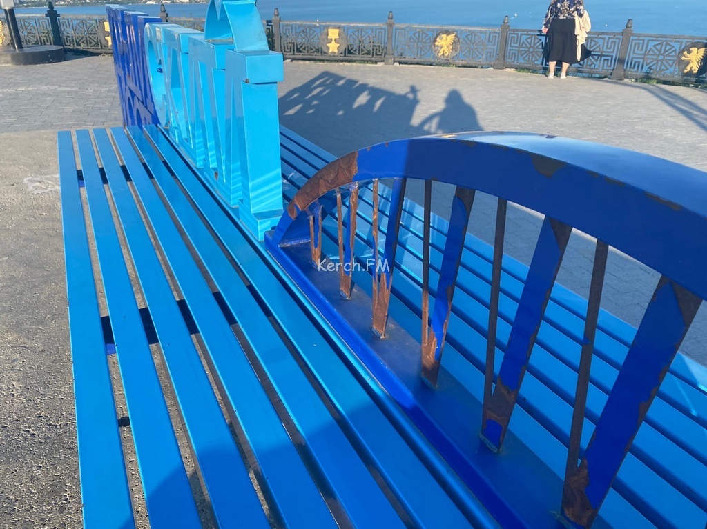 В Керчи сотни туристов каждый день приезжают на гору Митридат. Многие фотографируются на лавочке «Крымский мост» на фоне моря и арок моста. Вот только лавочка уже требует косметического ремонта. Об этом в редакцию Керчь.ФМ сообщили постоянные читатели.