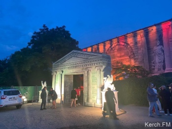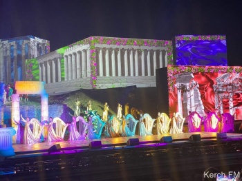 В этом году над декорациями постарались, керчане могли наблюдать и световое шоу, и водное. А вход охраняют два грифона