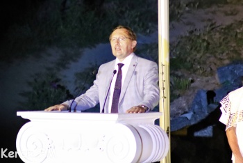 Непривычную для постоянных зрителей атмосферу дорогого зрелища создавали и стена воды, и голограммы любимых артистов. Неизменной была только тематика - история одного из древнейших городов на планете, любимого города Керчь.