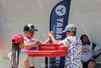 Самым зрелищным стали соревнования силачей. На керченской земле сегодня зафиксировали рекорд в поднятии камня. Министр спорта Крыма Ольга Торубарова участвовала в соревнованиях силачей в роли девушки - держателя цепи.