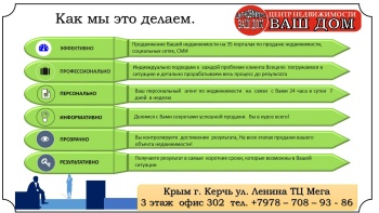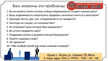 Центр недвижимости ВАШ ДОМ - это услуги полного цикла по продаже, оформлении, аренде жилой и коммерческой недвижимости, проведение кадастровых работ в г. Керчь и Ленинском районе.