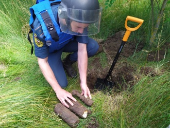 Всего к пиротехническим работам по обезвреживанию взрывоопасных предметов от МЧС России было привлечено 11 человек личного состава и 4 единицы техники.