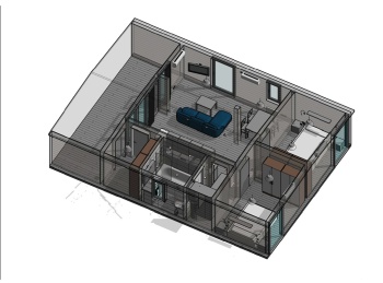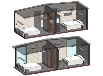 При проектировании мы учли все основные потребности человека для комфортного проживания: необходимые комнаты, система вентиляции и жизнеобеспечения дома. Модульные дома передаются заказчику с отделкой, освещением, полами и дверьми. Выделяющиеся элементы дома, которые приковывают к себе внимание, это панорамные окна лицевой части дома и просторная терраса. Благодаря такому способу остекления с внешней стороны дом выглядит легче, а внутри дома обеспечивает заполнение пространства дневным, естественным светом и визуально расширяет пространство.