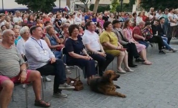 Завтра же в Керчь приедет Надежда Бабкина с концертом и выступит на площади Ленина. Собаки, видимо, опять хотят быть в первых рядах и уже заняли лучшие места на центральной площади города. И число желающих хвостатых быть на городских мероприятиях растет - теперь их ни одна две, а около десяти.