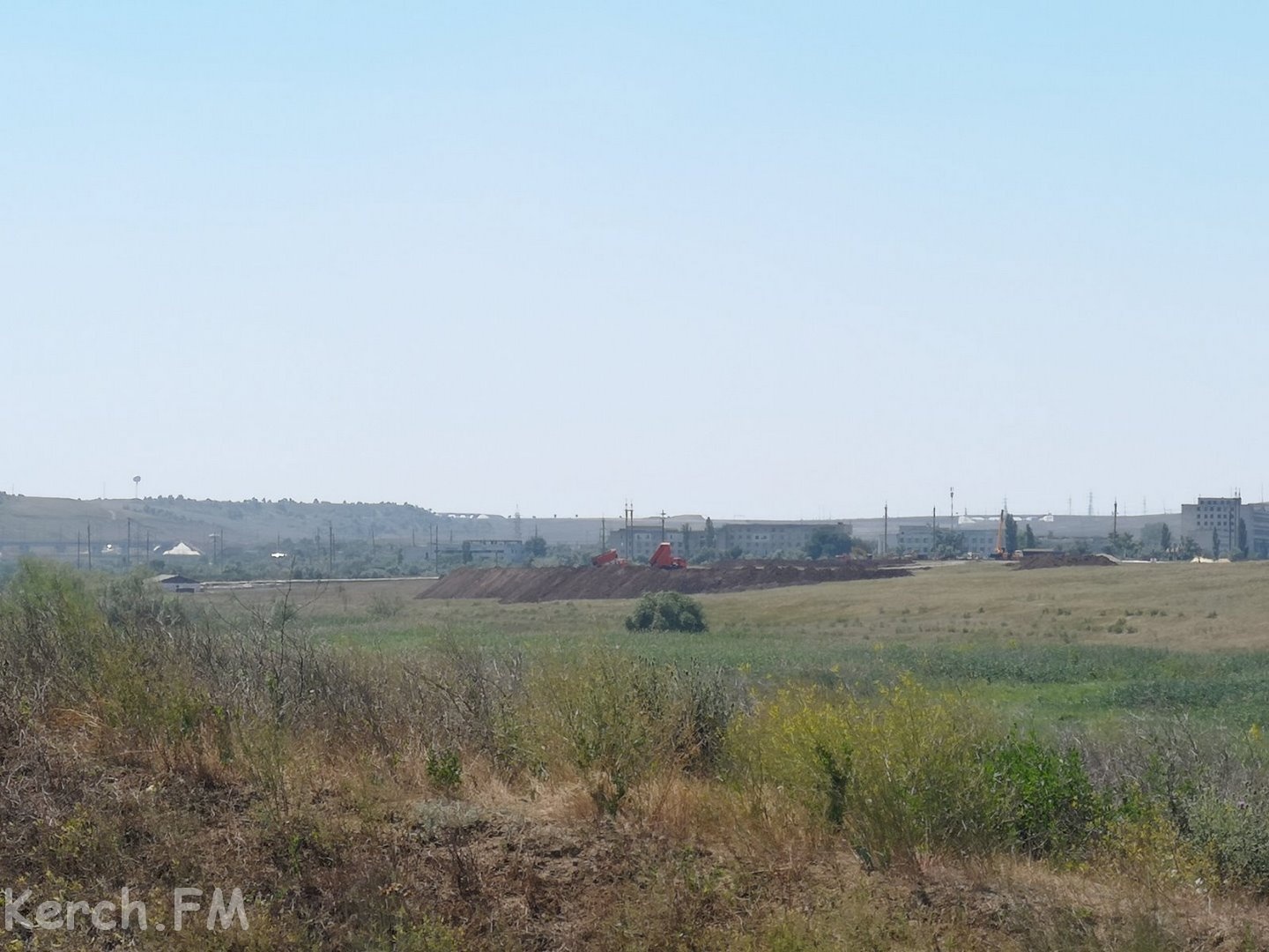 Даже в выходной день на месте строительства идет работа тяжелой техники и строителей. Выросшая земляная насыпь уже показывает размещение объектов первой очереди. В Керчи еще много неосвоенных земель.