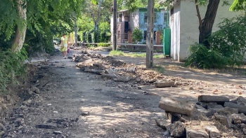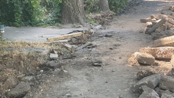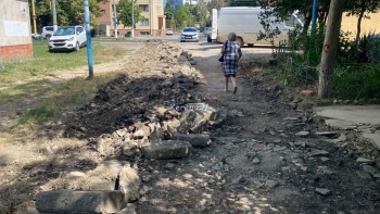 Ранее рабочие активно ввели работы и демонтировали старые бордюры, разрушив двор. Пройти по дороге во дворе людям тяжело, а для автомобилей проезд вообще не возможен.